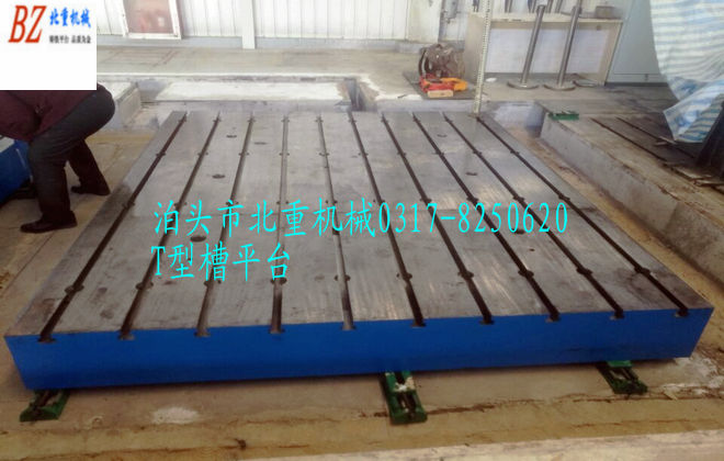 2、異形規格:通常T型槽平臺以長(cháng)方形為主,如需要正方形如5000*5000mm,可以考慮拼接成2塊長(cháng)方形,如2500*5000mm。這樣的好處是單塊鑄鐵T型槽平臺精度好控制。