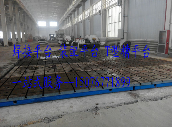 我公司為山西某國有企業(yè)制造的焊接平臺,裝配平臺安裝完成.該鑄鐵平臺規格:2000*4000*300mm 共計18件。表面橫豎開(kāi)有T型槽,可使用M20和M24的螺栓。T型槽平臺采用地腳螺栓和頂絲的固定調節方式。