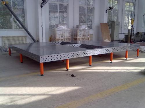 三維柔性焊接平臺材質(zhì):鑄造件(HT300),進(jìn)行整體退火熱處理消除內應力后放置三到六個(gè)月自然時(shí)效處理。